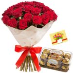 Send a beautiful bunch of 12 Red Roses, Ferreo Rocher 16 pcs with a Free Greeting Card with your message